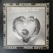 Sleeve VG+; Vinyl NM. Released in 1981 on Crass Records , Penis Envy is the third studio album by anarcho‑punk collective Crass and marks a bold departure from their earlier hardcore sound. Recorded at Southern Studios in December 1980, the album features exclusively female vocals by Eve Libertine and Joy De Vivre—Steve Ignorant is listed as “not on this recording”—and pivots toward feminist themes, challenging marriage, the patriarchy and sexual repression rather than simply railing against “the system”.